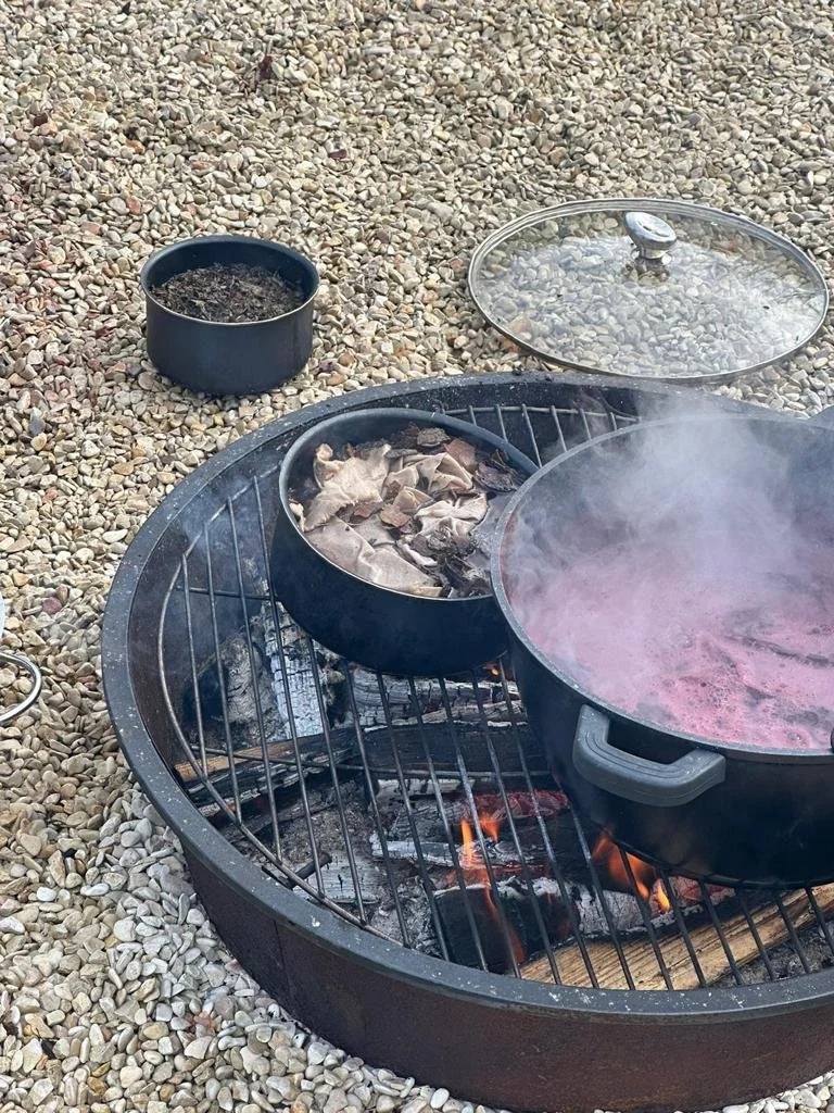 Une semaine de retraite créative dans la forêt d’Orléans pour s’initier à de multiples techniques de teinture et d’impressions végétales : teintures unies, écoprint, frappage, impression au mordant…