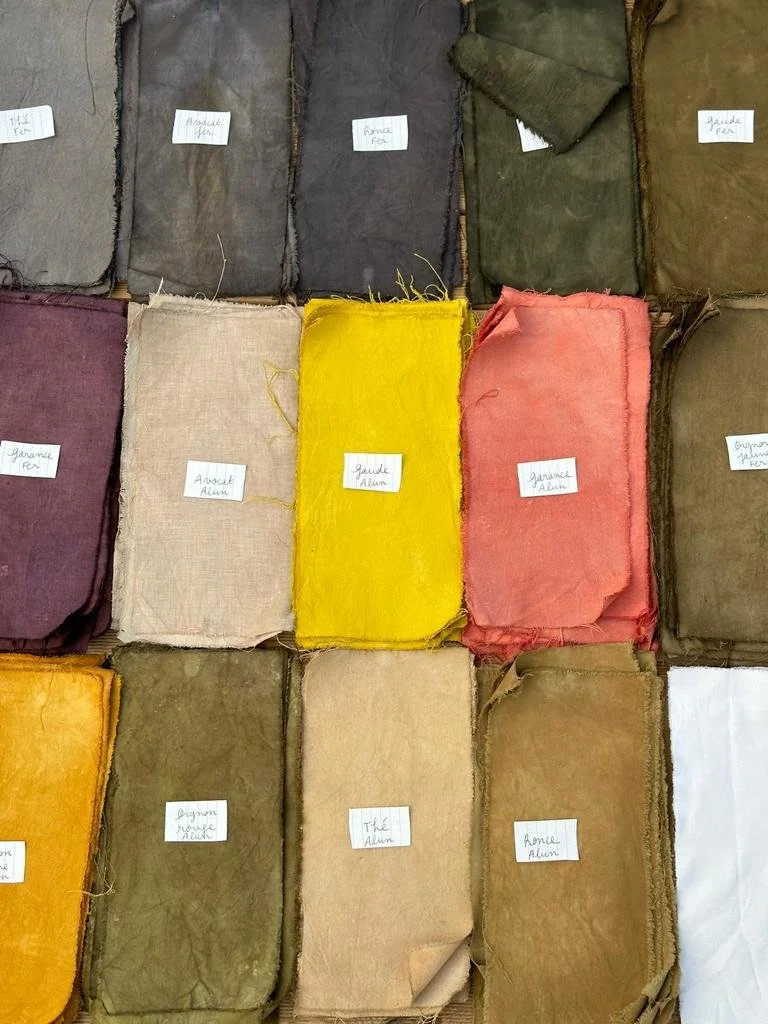 Initiation à la teinture unie et à motifs, au nuançage, à la technique traditionnelle japonaise du shibori, à l’écoprint, au frappage, à l’impression à mordant, à la teinture à la cuve d’indigo…
