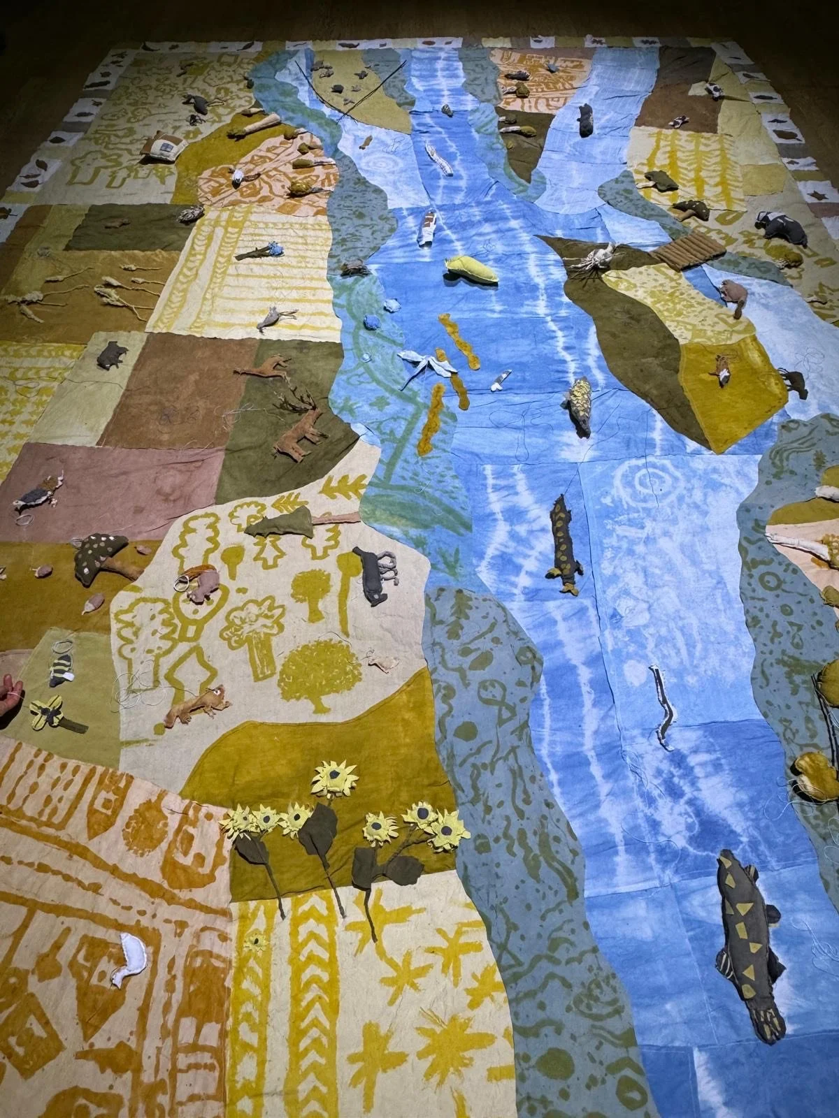 Nous avons créé le Tapis-monde, une grande pièce textile participative qui raconte le fleuve Meuse.